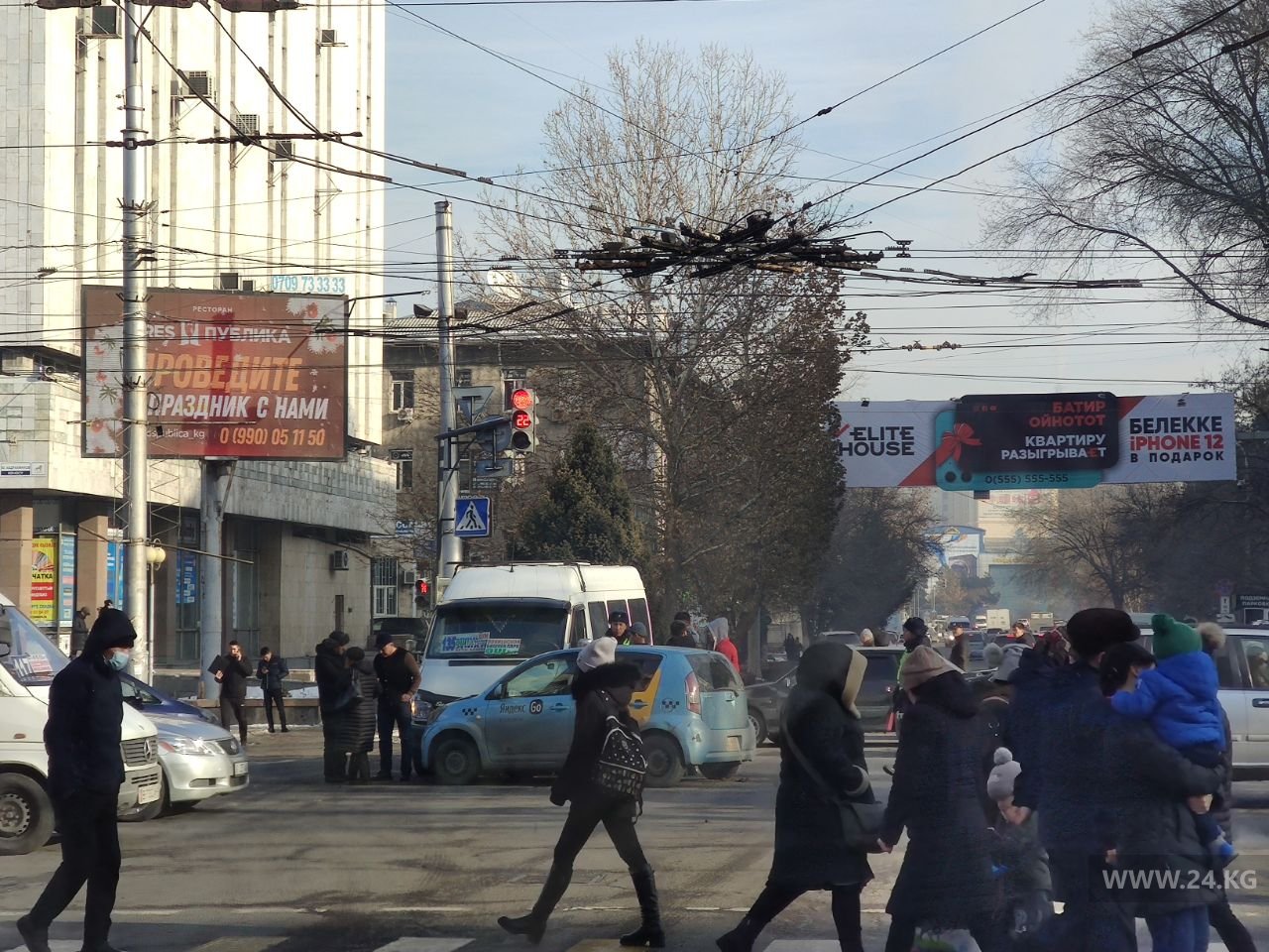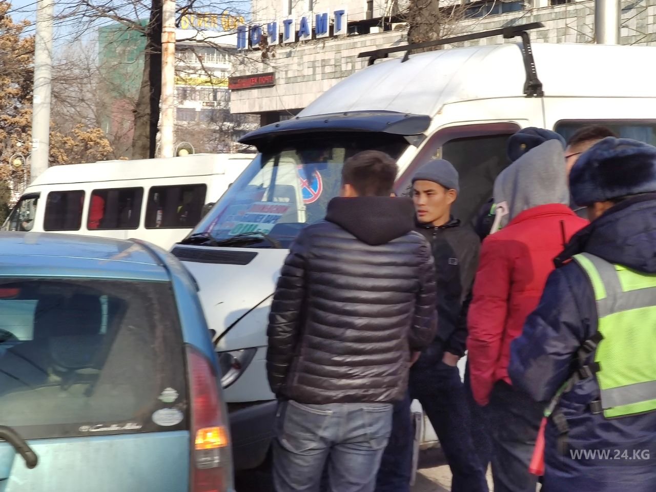 В центре Бишкека на пересечении улиц Абдрахманова и Киевской произошло ДТП с участием маршрутки и машины одной из служб такси. Об этом 24-kg.com рассказал читатель.