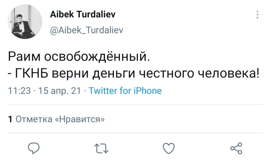 Вспомнили и слова экс-президента Сооронбая Жээнбекова, когда тот требовал дать факты о коррупционных схемах бывшего таможенника. «Хоть что-нибудь хорошее произойдет у нас в стране? Двести непонятных мужчин на митинг вышли, Райым — пушистик, ханституция», — пишут пользователи соцсетей.«Ура! Райым свободен! Пожалуйста, верните Макса (Максима Бакиева) и всех остальных. Скорее уже», — саркастически шутит активистка Айжан Мырсалиева.
