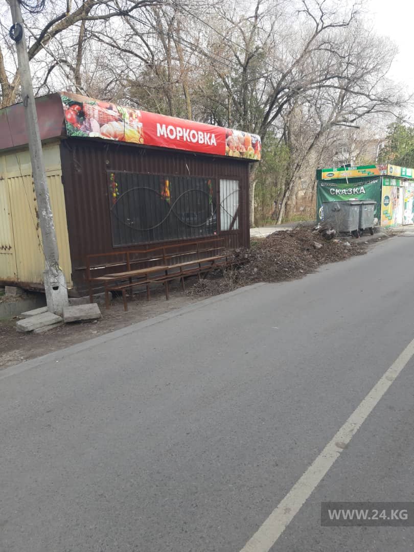 Жители 6-го микрорайона просят убрать торговые павильоны напротив домов № 17, 18, 19. Они написали на WhatsApp 24-kg.com.