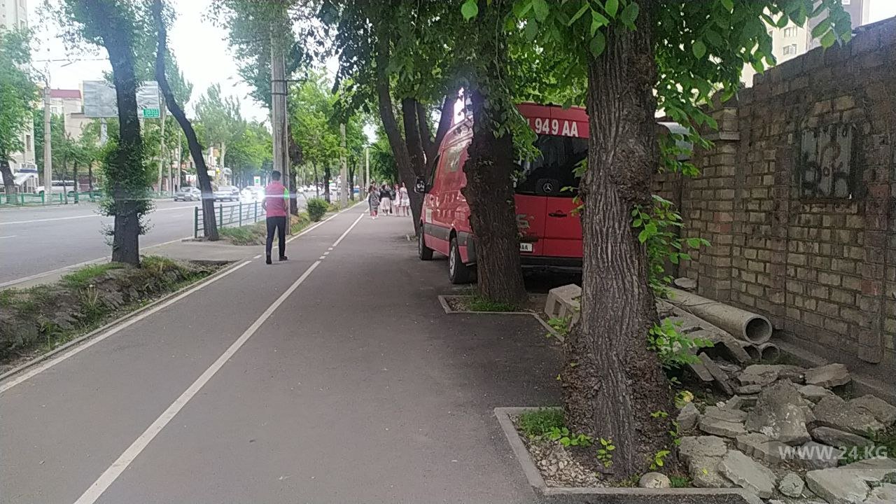 На улице Байтика Баатыра грузовой бус припарковали между деревьями на тротуаре.