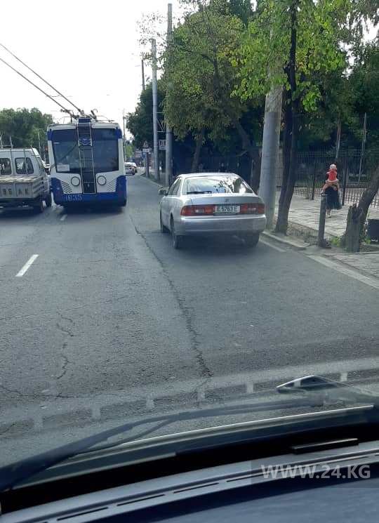 Чудаки парковки. Водитель в Бишкеке оставил машину на перекрестке, закрыв проезд