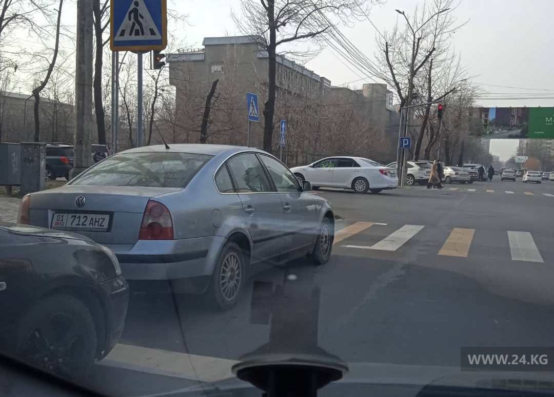 На перекрестке улиц Токтогула и Логвиненко припарковались перед поворотом.
