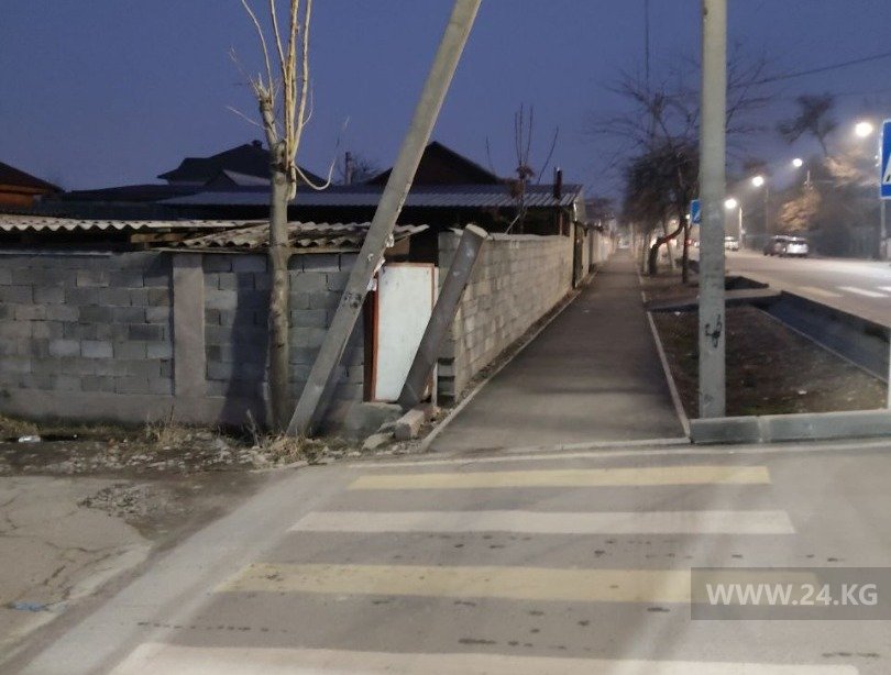 На улице Койбагарова, в районе школы № 60, накренившийся столб опасен для пешеходов. Об этом 24-kg.com сообщил читатель.