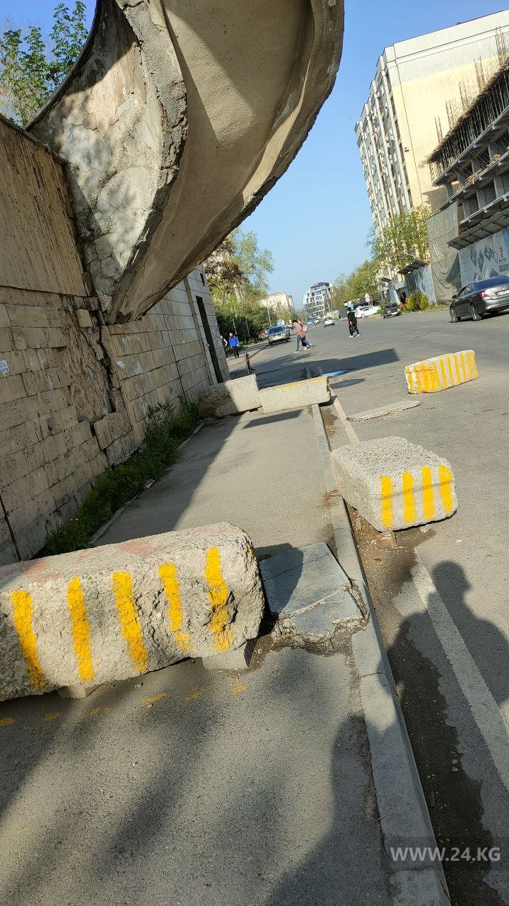В Бишкеке возле сквера имени Максима Горького бетонные блоки перегородили тротуар. Об этом 24-kg.com сообщил читатель.