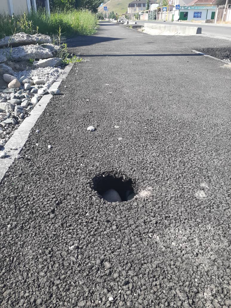 В Бишкеке на новом тротуаре в жилмассиве «Ынтымак» появилась дырка. Об этом 24-kg.com сообщил читатель.
