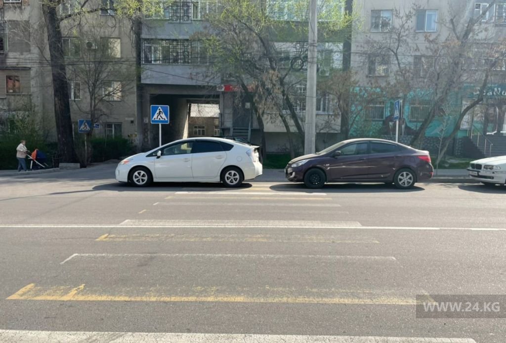 На улице Тыныстанова припарковались на разметке пешеходного перехода.