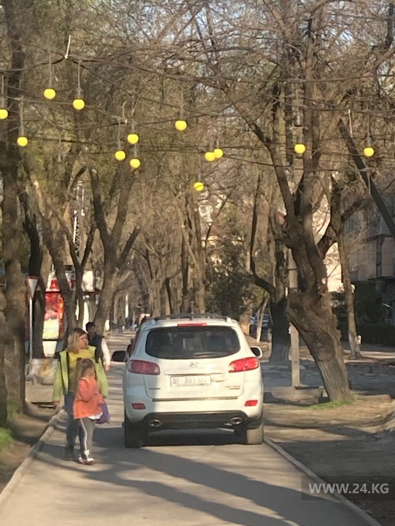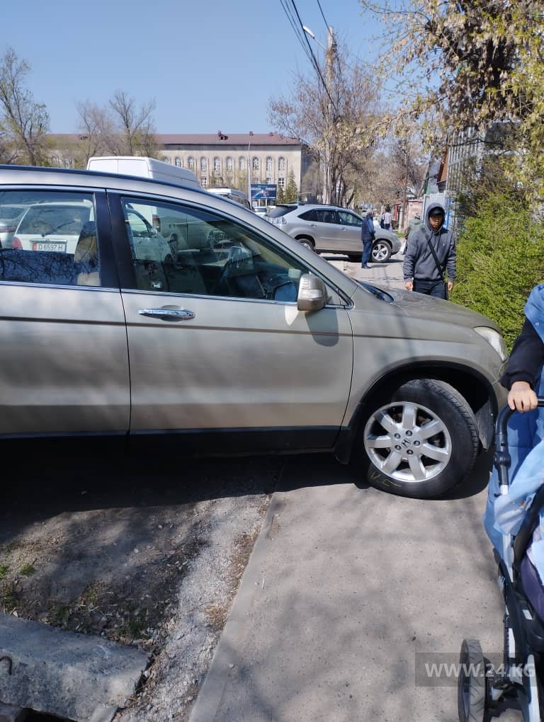 На проспекте Чуй, чтобы припарковаться, машины едут по тротуару. По словам очевидца, одна из них едва не сбила ребенка.
