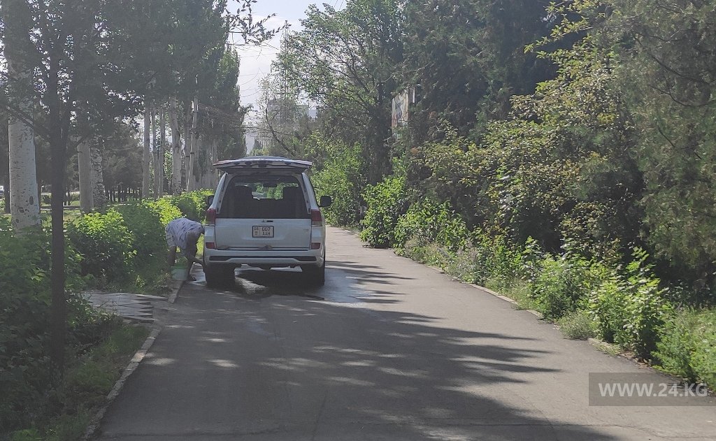 А этот мужчина устроил автомойку возле парка в микрорайоне «Асанбай».