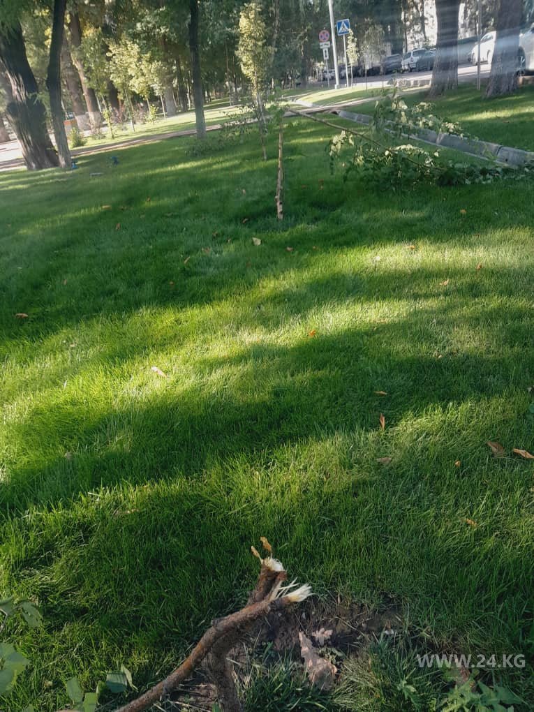 В Бишкеке на бульваре Эркиндик сломали молодые деревья. Об этом 24.kg сообщила читательница.