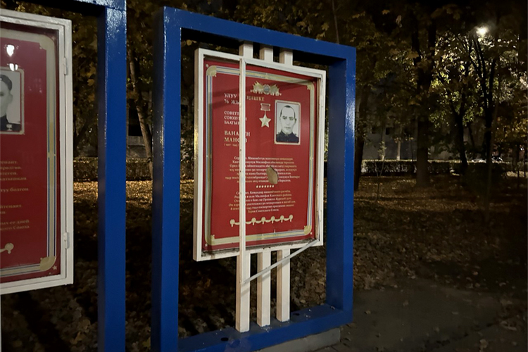 В Бишкеке вандалы опять разбили стенд с портретами Героев Советского Союза