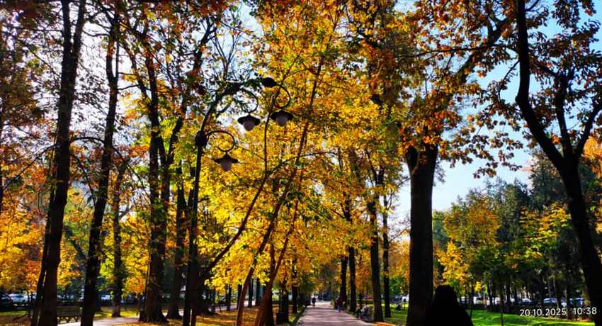 Сначала мы вернемся в золотую осень Бишкека. Сейчас явно не хватает красок нашему серому городу — а в октябре их было с избытком. Их и увидел Николай Манаковский.