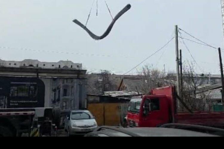 Особую тревогу вызывает процесс разгрузки строительных материалов. Краны перемещают грузы над жилыми домами, в которых живут люди. Они отмечают, что ширина и длина улицы Коенкозова не позволяют разгружать без нарушений норм безопасности.