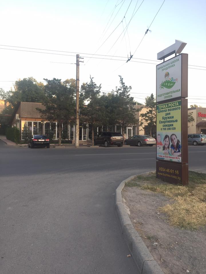 «Уважаемые представители мэрии Бишкека, прошу обратить внимание на рекламный щит «Точка роста», установленный в 7-м микрорайоне на проезжей части по улице Сухе Батора, возле караоке-бара, который создает помеху и неудобства при выезде на дорогу. Совершая поворот налево, закрывает обзор встречной машины, что часто приводит к аварийным ситуациям», — написал пользователь Руслан Кененсариев.