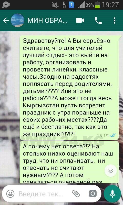 Учителям не заплатят за работу 1 сентября — в День знаний. Такой ответ они получили от представителей Министерства образования и науки, сообщили читатели ИА «24-kg.com».