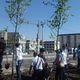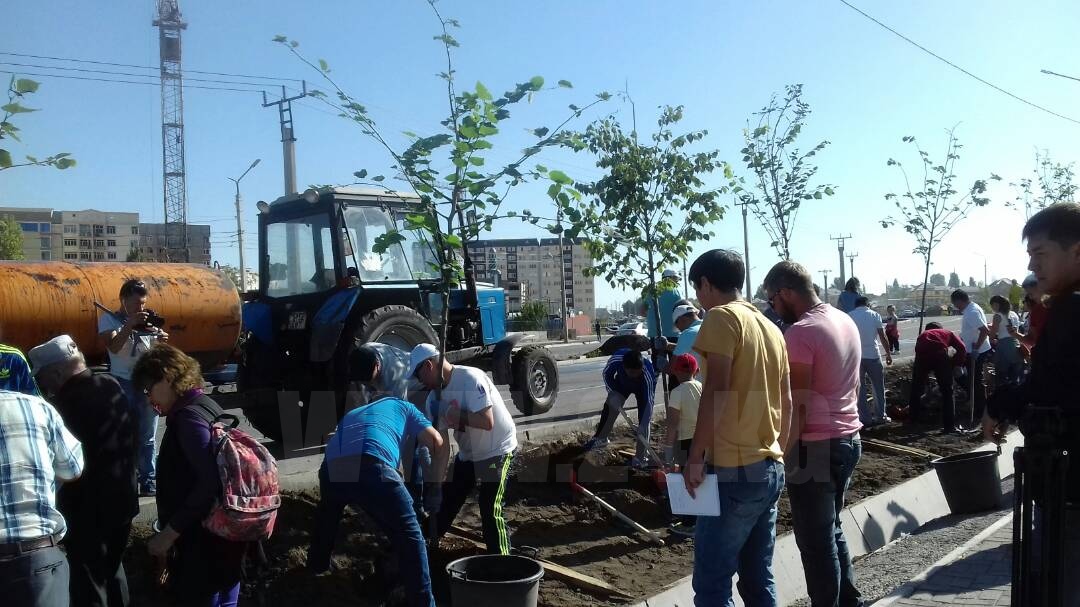 Бишкекчане сегодня помогли сотрудникам «Зеленстрой» озеленить улицу Токомбаева.