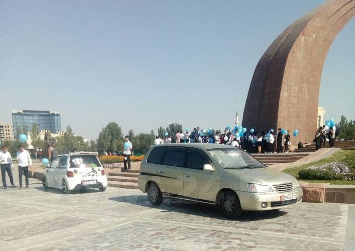Участники акции «Голубь мира», прошедшей сегодня на площади Победы, оставили машины около Вечного огня. Фотографию припаркованных автомобилей прислал ИА «24-kg.com» читатель.