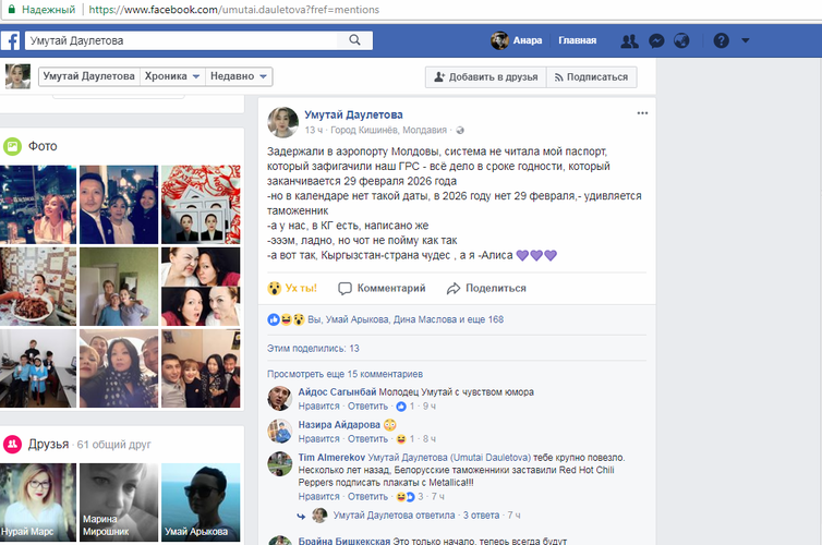 Пользователь социальной сети Facebook Умутай Даулетова на своей странице в Facebook сообщила, что ее задержали в аэропорту Кишинева в Молдове.