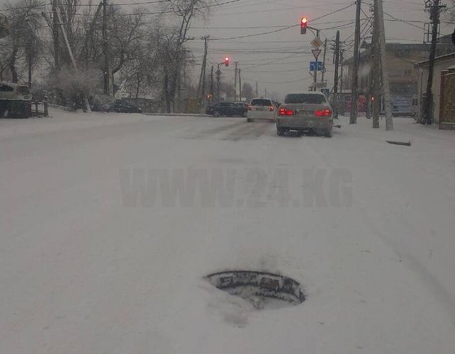 На пересечении улиц Курманджан Датки и Фрунзе на проезжей части уже около двух недель открыт люк. Об этом ИА «24-kg.com» сообщил читатель.
