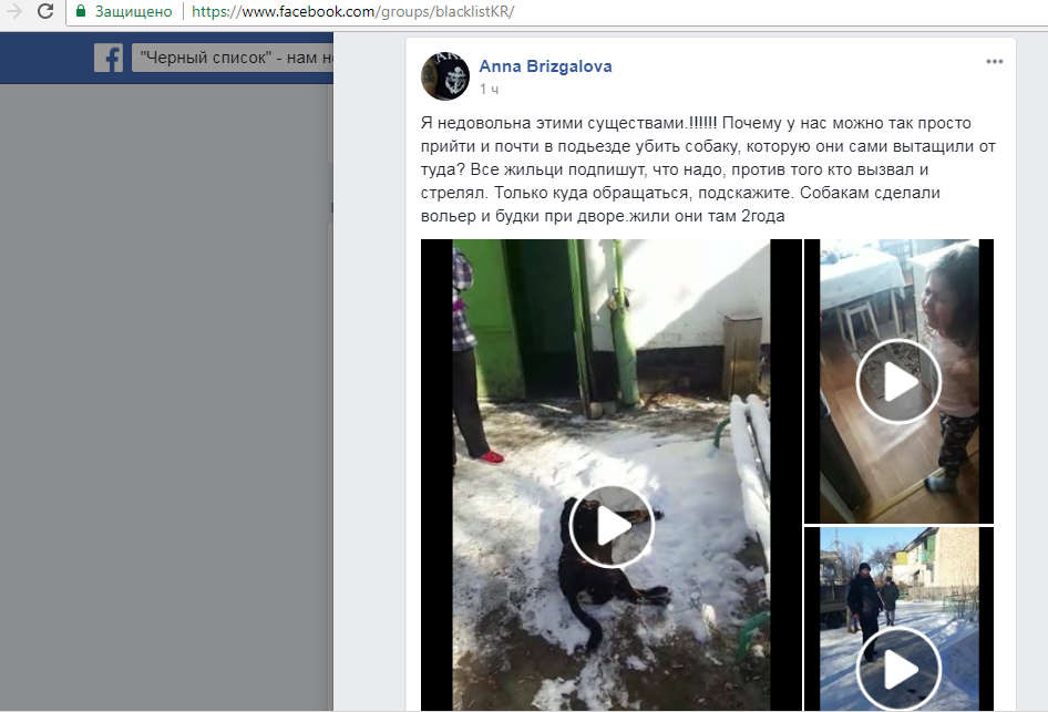 «Почему у нас можно так просто прийти и почти в подъезде убить собаку, которую они сами вытащили оттуда? Собакам сделали вольер и будки при дворе. Жили они там два года», — возмущена пользователь Facebook Anna Brizgalova.