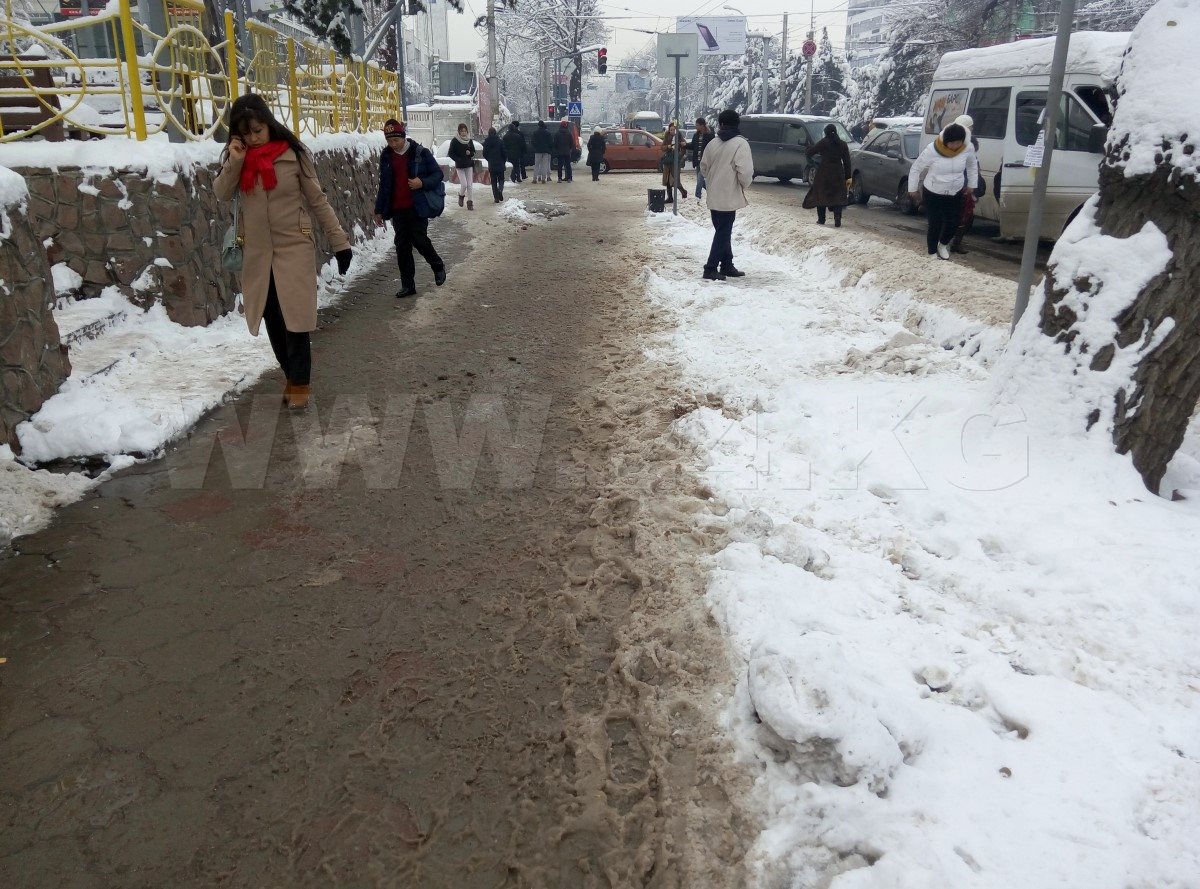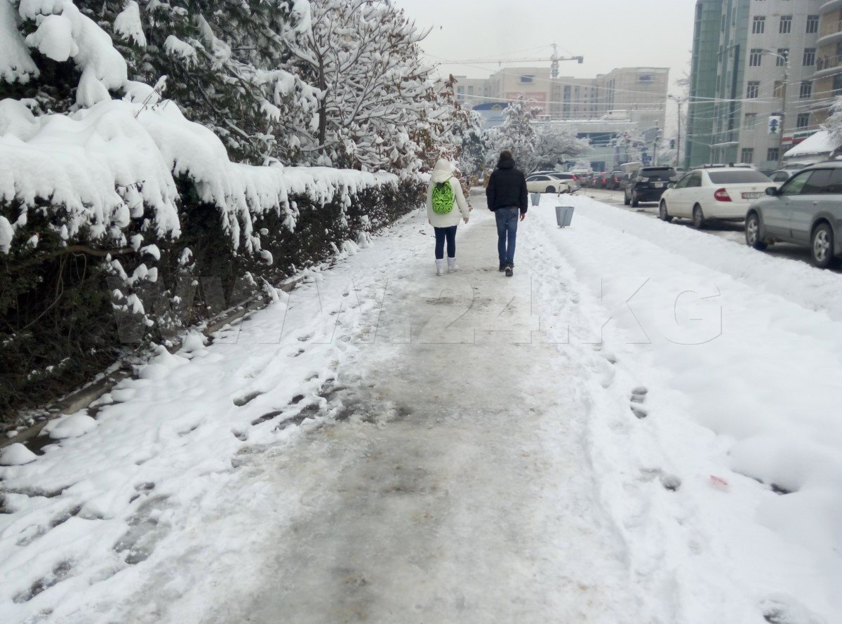 А тем временем в Бишкеке растет число пострадавших от гололеда, обращающихся к медикам с ушибами и переломами. А вот в «Тазалык» за них решили пожаловаться мы.