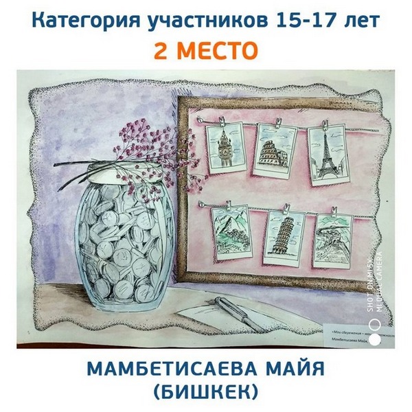 Несмотря на талант к рисованию, девочка собирается стать хирургом. Еще одна победительница из Бишкека Бермет Туркменова объяснила, что на рисунке изображен ее младший брат с копилкой в руках.