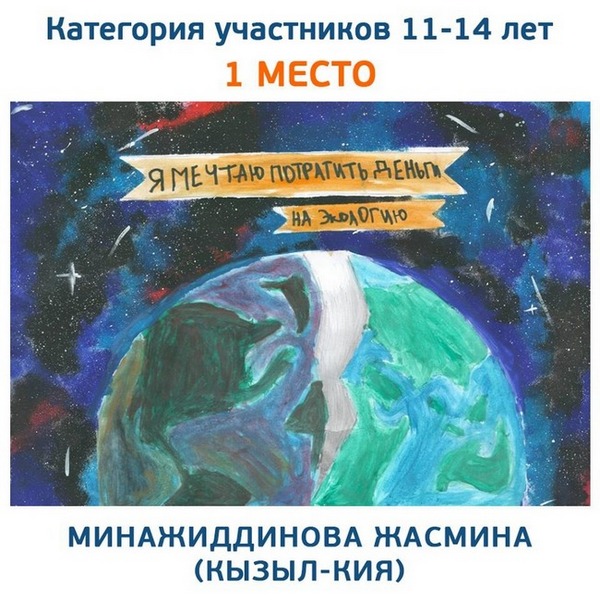 А вот Жасмина Минажиддинова из Кызыл-Кии посвятила свою работу теме бережного отношения к природе. В будущем она собирается стать дизайнером и говорит, что для этого ей предстоит много учиться.