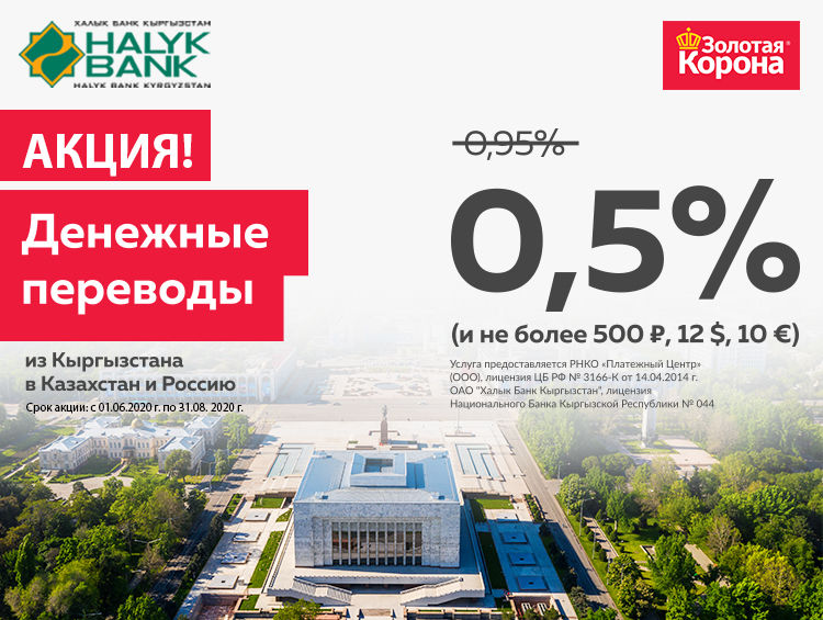 ОАО «Халык Банк Кыргызстан» совместно с системой денежных переводов «Золотая корона» объявляет о запуске акции.
