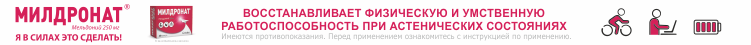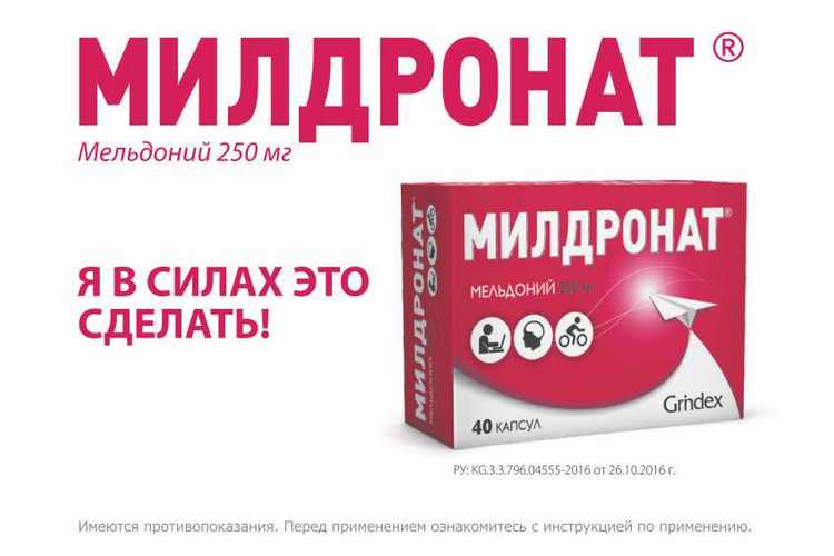 Имеются противопоказания. Перед применением ознакомитесь с инструкцией по применению. РУ KG.3.3.796.04555-2016 от 26 октября 2016 года. www.mildronat.ru.