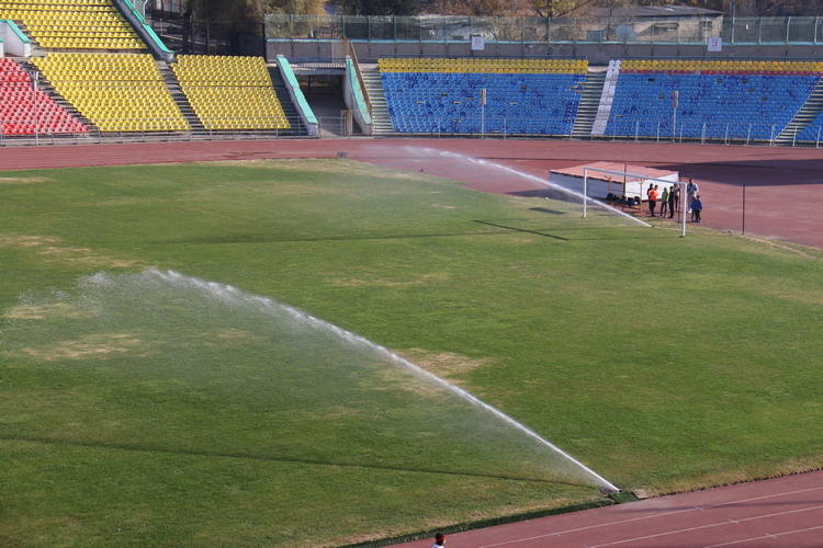 В Кыргызстане это третий стадион с автоматическим поливом футбольного поля. Такая система работает на двух полях Канта.