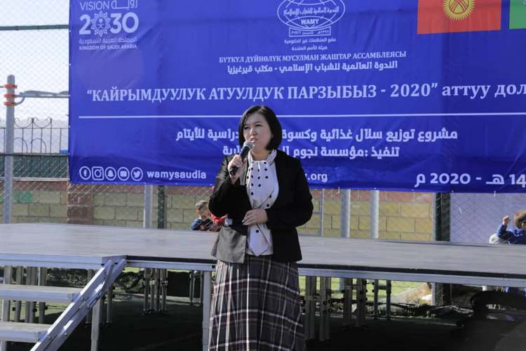 В благотворительном мероприятии приняли участие заместитель министра труда и социального развития КР Ализа Солтонбекова, и. о. мэра Бишкека Балбак Тулобаев, представитель ВАММ по Средней Азии Саид Баюми и президент ВАММ в Кыргызстане Мухаммед Мади.