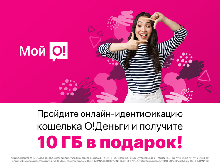 Мобильный оператор О! дарит 10 гигабайт интернета за онлайн-идентификацию кошелька всем абонентам тарифных планов «Переходи на О!», «Твой Суперноль» и «Твой ноль»! Подробнее об акции.