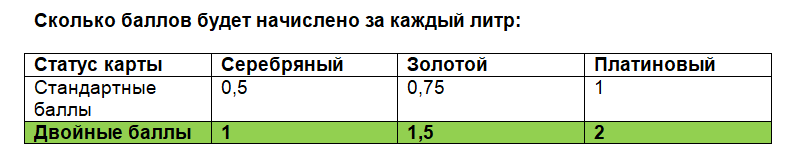 *Акция «Двойные баллы за дизельное топливо» действует до 100 литров за одну покупку.