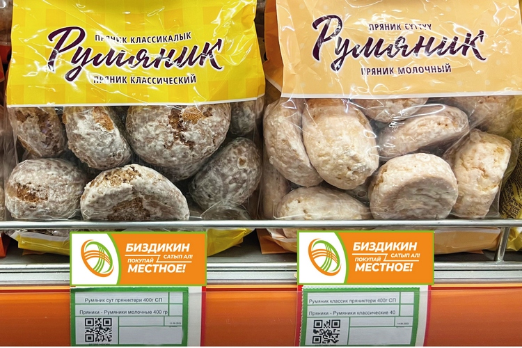 Особые отметки на полках и в магазинах — это только часть масштабной кампании по поддержке отечественного производства от «Умай групп». Компания также в своей печатной продукции будет выделять местные товары слоганом «Биздикин сатып ал».