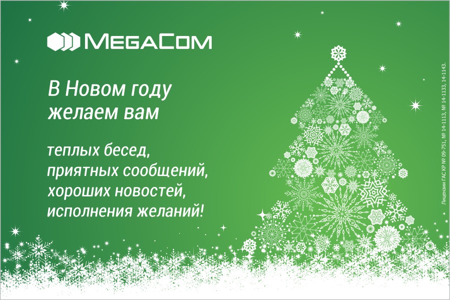 В преддверии праздничных дней компания MegaCom желает каждому кыргызстанцу радости, здоровья, благополучия и теплого общения в кругу родных и близких. Пусть все мечты сбываются, а мобильные звонки приносят только добрые вести!