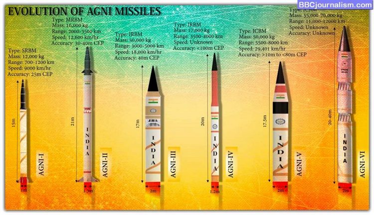 Другие типы ракет семейства «Агни», разработанные DRDO, включают в себя ракеты «Агни-1» с дальностью полета до 700 километров, «Агни-2» — 2 тысячи километров, «Агни-3» — более 3 тысяч километров, «Агни-4» — 4 тысячи километров и «Агни-5» с дальностью полета более 5 тысяч километров. Ракеты «Агни» составляют основу ядерного сдерживания Индии.