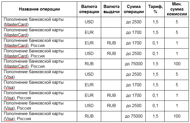 Тарифы системы денежных переводов «Юнистрим»: