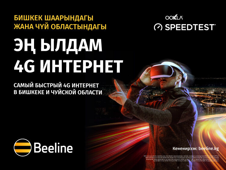 Согласно исследованию, в третьем квартале 2023 года 4G-интернет от Beeline был признан самым быстрым в Бишкеке и Чуйской области.