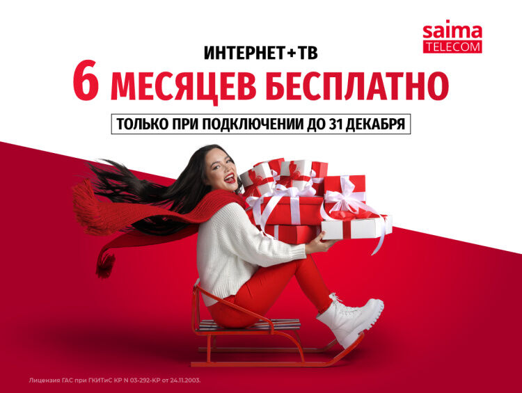 Бесплатные месяцы предоставляются на тарифе «Включай Saima 70 мбит/с + O!TV» при единовременной оплате за 1-й и 12-й месяц пользования. Акция доступна только для новых абонентов, физических лиц в период с 27 ноября 2023 года по 31 декабря 2023-го. Акция не распространяется на жилмассивы «Ала-Тоо 3» и «Ак-Ордо». На дополнительно подключаемые сервисы AMEDIATEKA, START, О!КИНО — акционное предложение не распространяется. При расторжении договора авансовый платеж за 12-й месяц пользования не возвращается. ТВ-приставка предоставляется в ответственное хранение. Предложение ограничено.