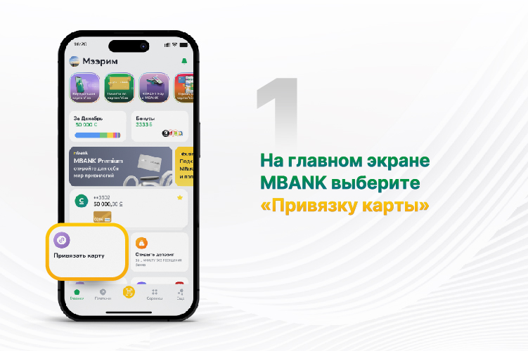 1. Открыть приложение MBANK и выбрать «Привязать карту».