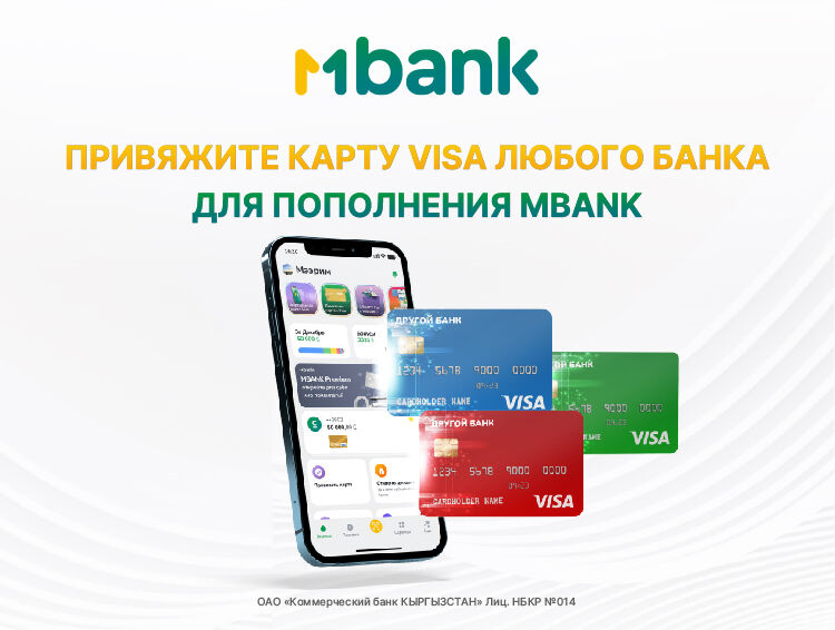 Для удобства клиентов ОАО «Коммерческий банк КЫРГЫЗСТАН» | MBANK представляет новую функцию — возможность пополнения своего счета с любой карты Visa, прямо в приложении MBANK.