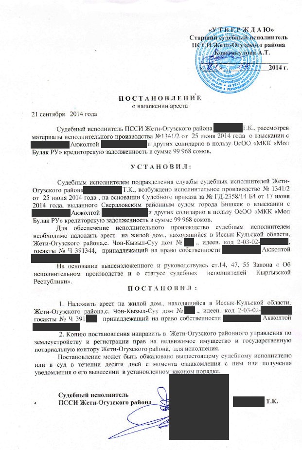 Спустя месяцы заемщики не погашали кредит и не прислушивались к обращениям представителей микрокредитной компании вернуть долг. В итоге кредитор обратился в Отдел розыска и взыскания, а далее в суды КР.