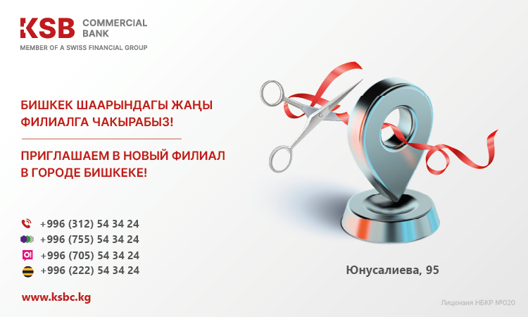 Будем рады видеть всех в числе клиентов закрытого акционерного общества «Коммерческий банк КСБ» в столице и регионах КР.