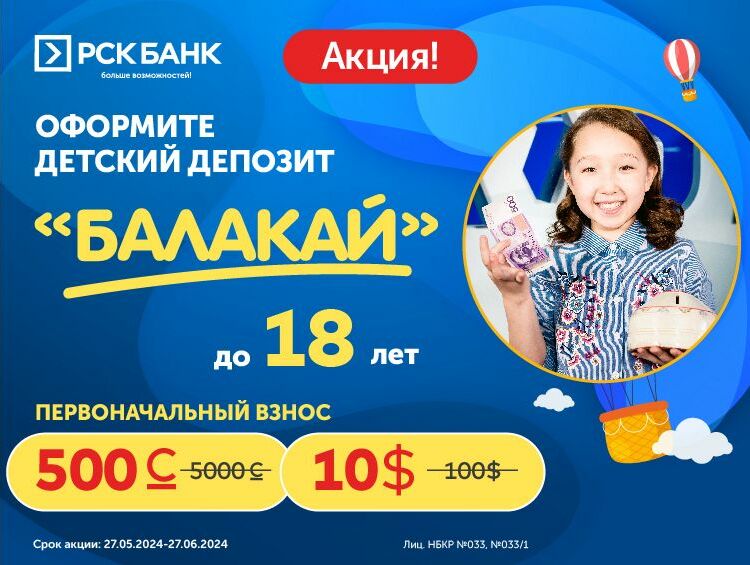 «РСК Банк» объявляет о старте летней акции, в рамках которой снижена сумма первоначального взноса по детскому депозиту «Балакай» в 10 раз: