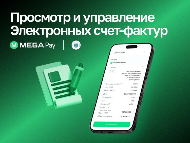 Благодаря инновационным решениям MegaPay стало еще удобнее и функциональнее для налогоплательщиков. Впервые в Кыргызстане в мобильном приложении от MEGA доступна возможность просмотра списка электронных счетов-фактур (ЭСФ), выставленных налогоплательщиком, а также в его адрес. В MegaPay также можно принимать/отклонять ЭСФ.