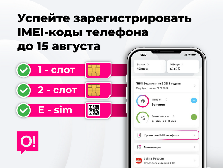 Мобильный оператор О! напоминает о том, что важно успеть зарегистрировать IMEI-коды своего, купленного или подаренного вам, телефона.