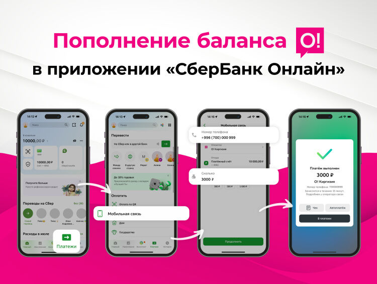 Приложение «СберБанк Онлайн» поможет вам оказать приятный знак внимания. Просто пополните баланс номера сети О! в Кыргызстане.