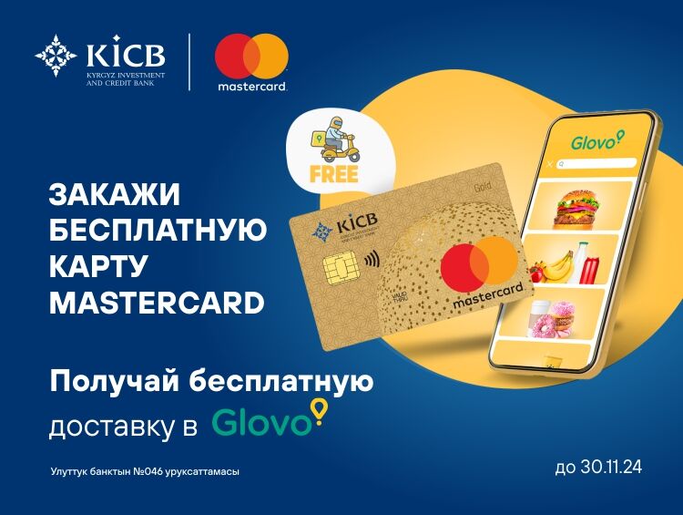 Торопитесь получить карту Mastercard KICB бесплатно и получать бесплатную доставку от Glovo!