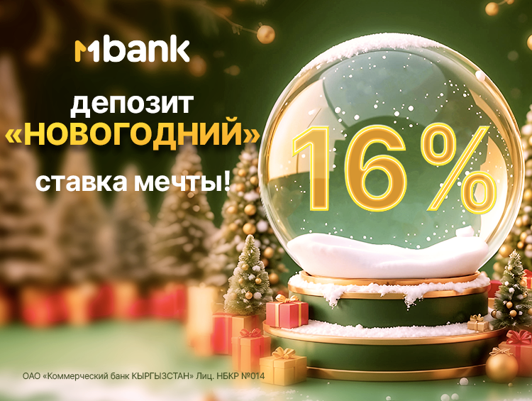 ОАО «Коммерческий банк Кыргызстан» | MBANK запустил специальное предложение для своих клиентов — депозит «Срочный» с рекордной новогодней ставкой 16 процентов годовых в сомах. Об этом сообщили в финансовом институте.