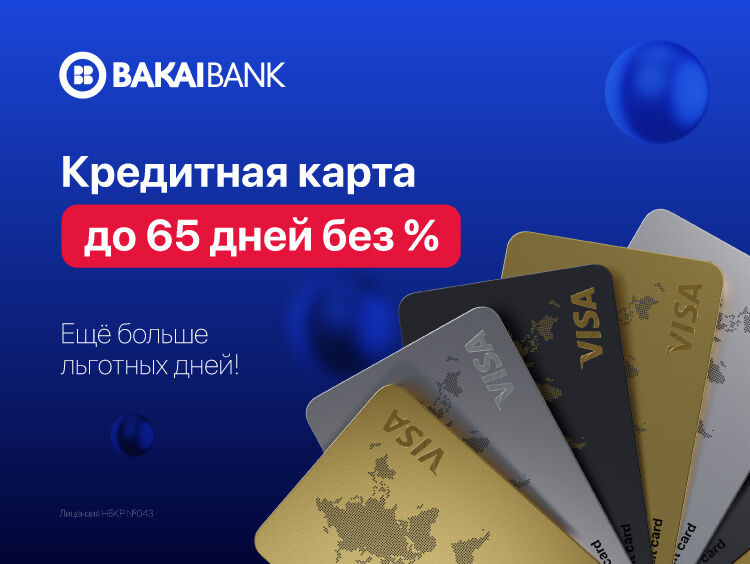 Представьте: деньги всегда под рукой, а проценты — только после 65 дней. «Бакай Банк» предлагает уникальное решение — единственную в Кыргызстане кредитную карту с рекордным льготным периодом до 65 дней.