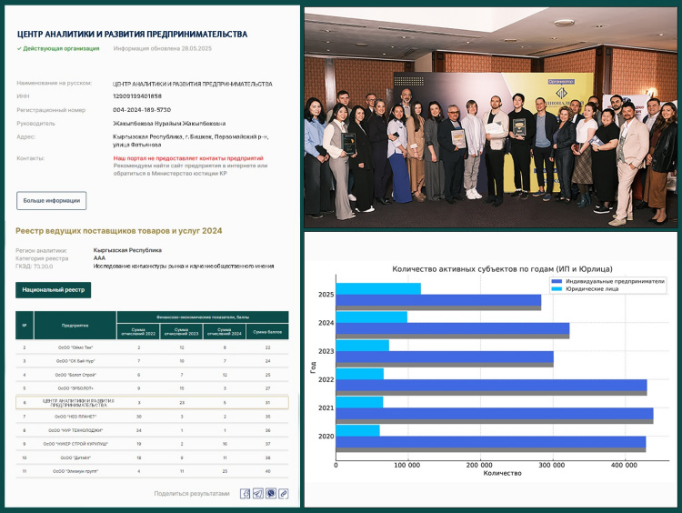 Центр также публикует аналитические статьи, участвует в организации бизнес-форумов и оказывает экспертную поддержку предпринимателям. Все это делает проект важной частью инфраструктуры доверия в деловой среде Кыргызстана.